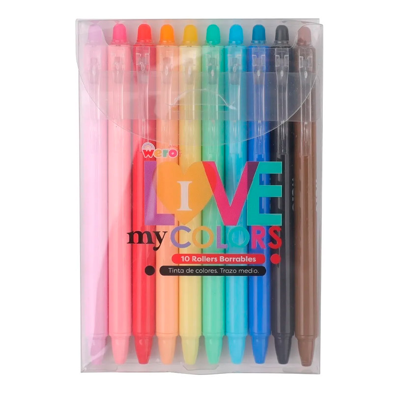Los Rollers Borrables Wero LOVE my Colors combinan la diversión de los colores vibrantes con la practicidad de la tinta borrable. Ideal para tomar apuntes, hacer esquemas o personalizar tus planners.