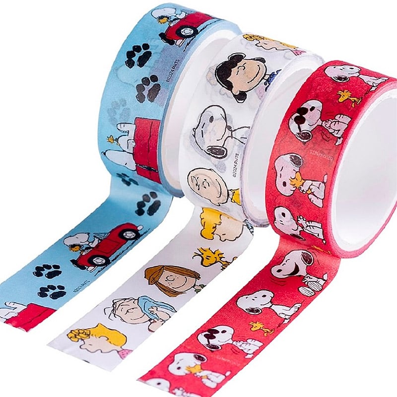 Set de 3 cintas washi tape con efecto glitter y motivos de Snoopy y su pandilla. Perfectas para personalizar agendas, cuadernos, regalos y más, con un toque de brillo y estilo único.