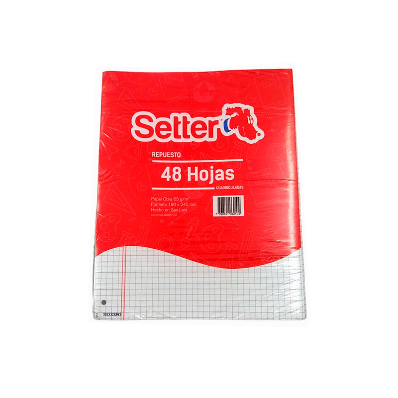 Repuesto escolar Setter 65 gr. 48 hojas Cuadriculadas. Tamaño carta. Papel blanco Mate