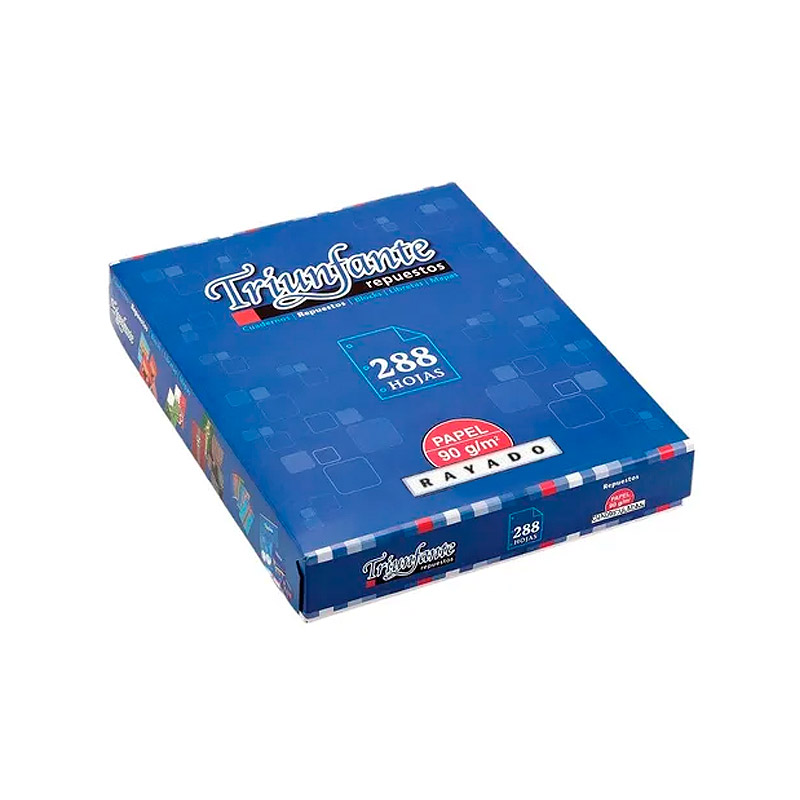 Repuesto escolar Triunfante 288 hojas Rayadas. Tamaño carta. Papel blanco Mate
